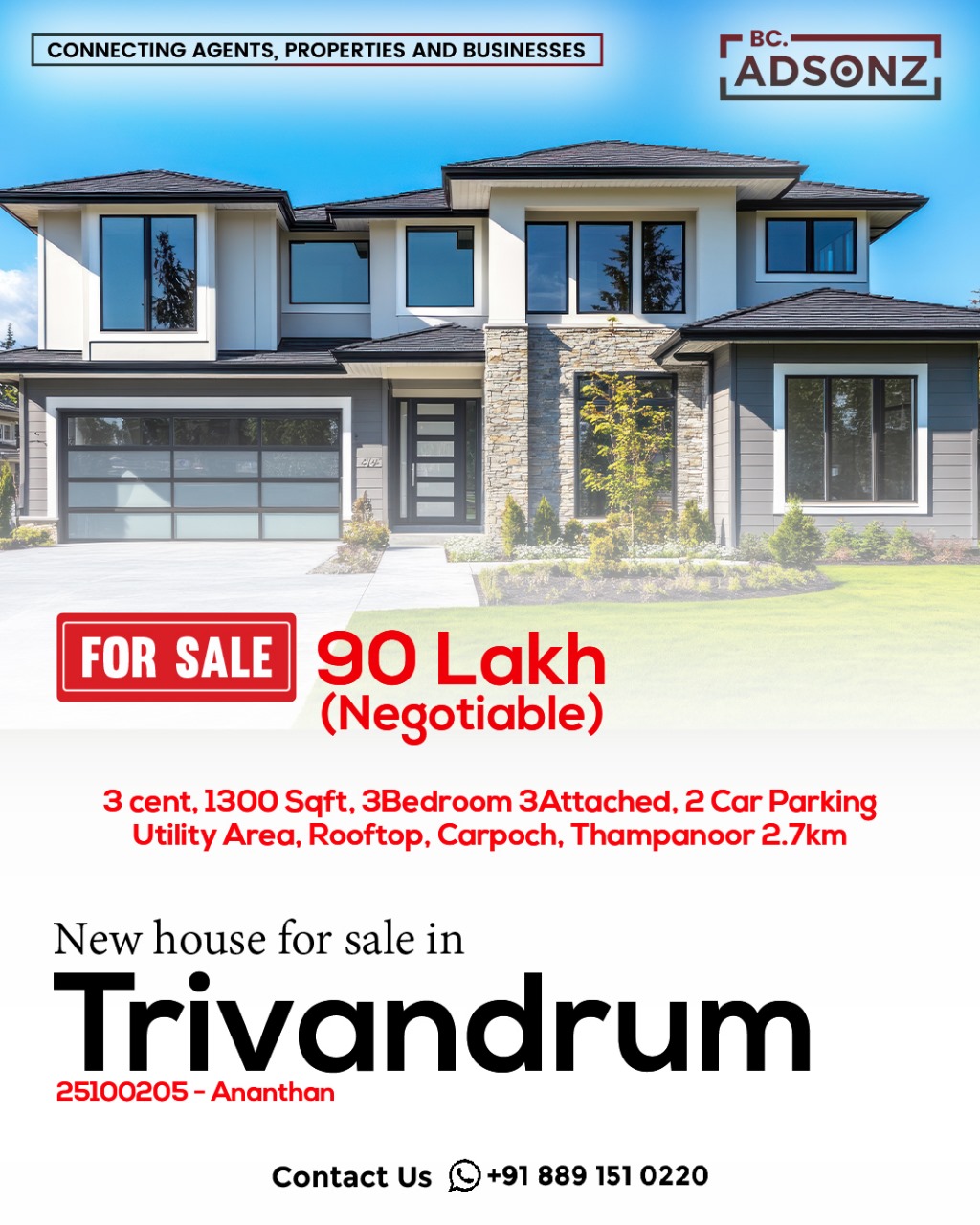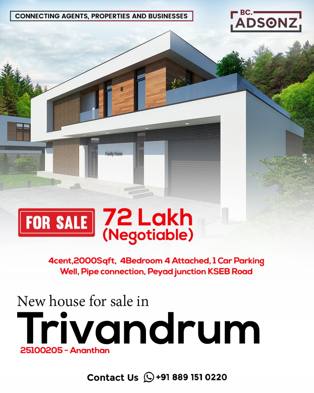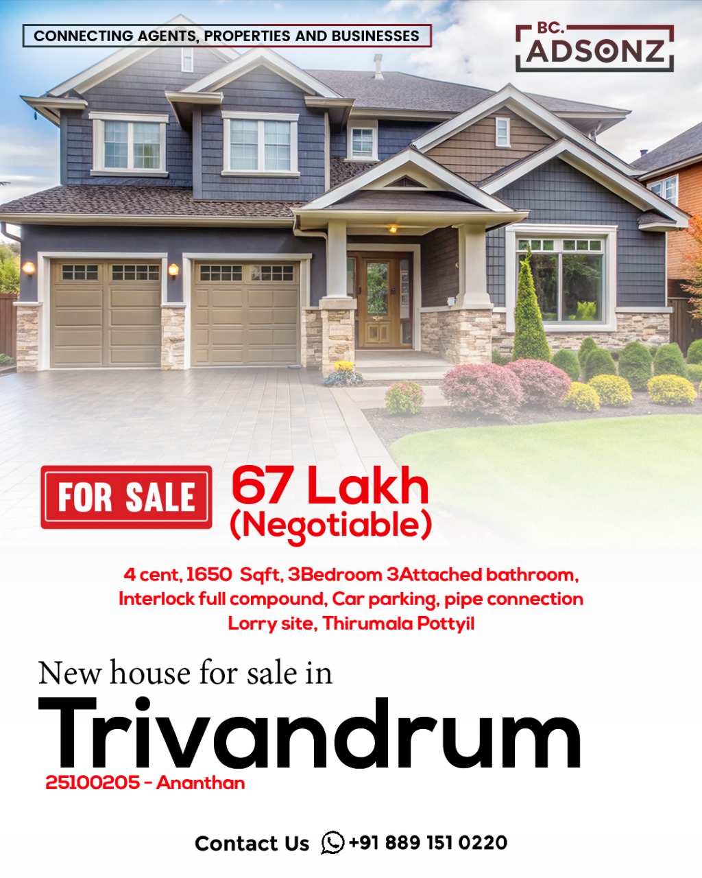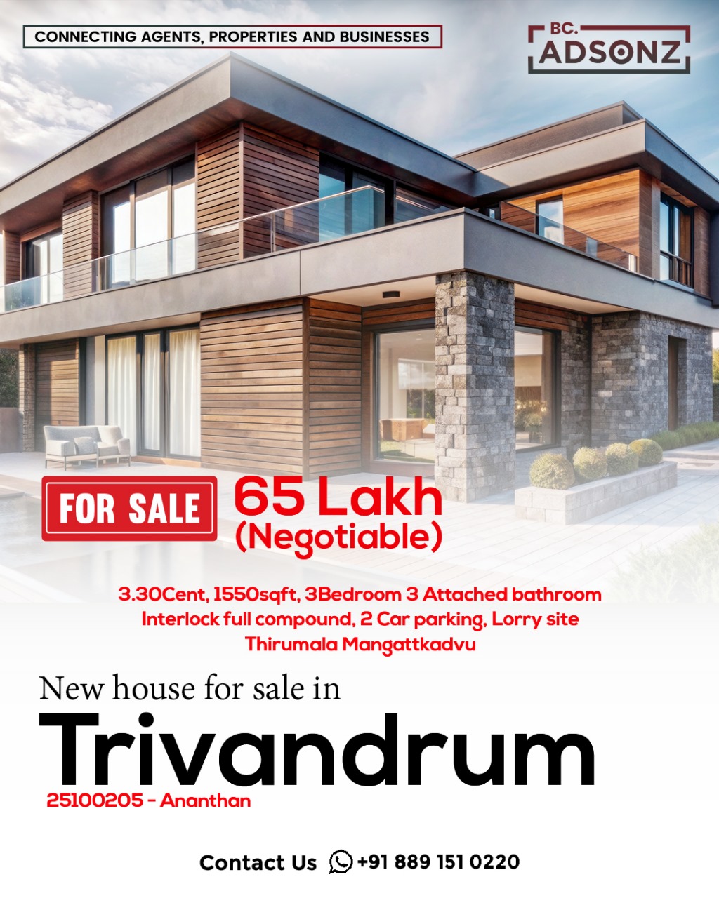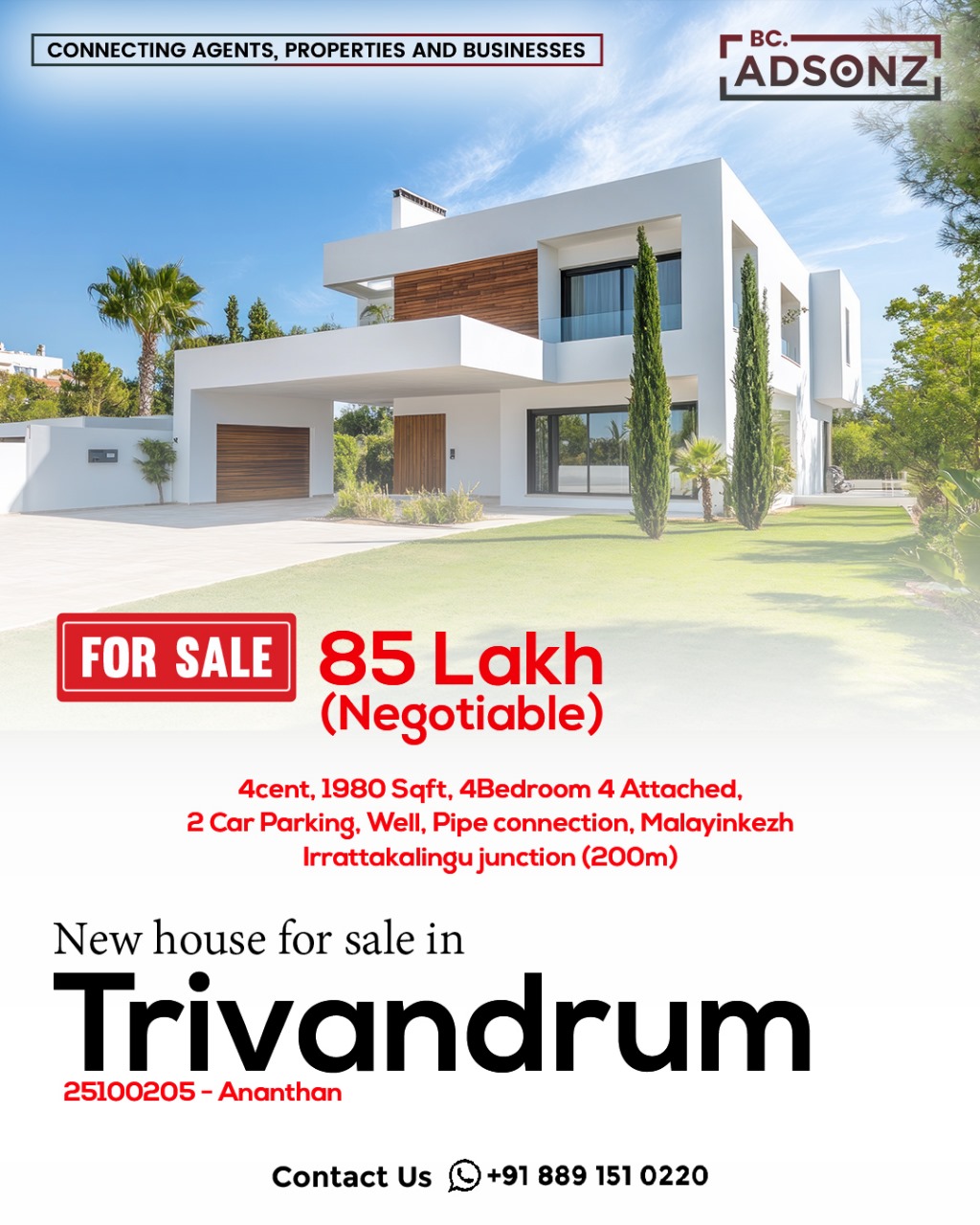 Brand New House for Sale – Prime Location in Moonamoodu Junction, Vattiyoorkavu, Trivandrum!