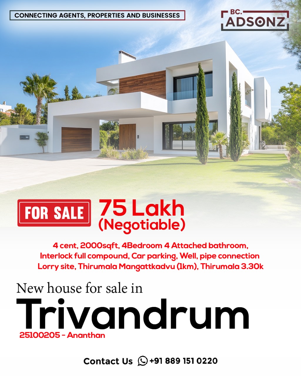 Brand New House for Sale in Vattiyoorkavu, Trivandrum